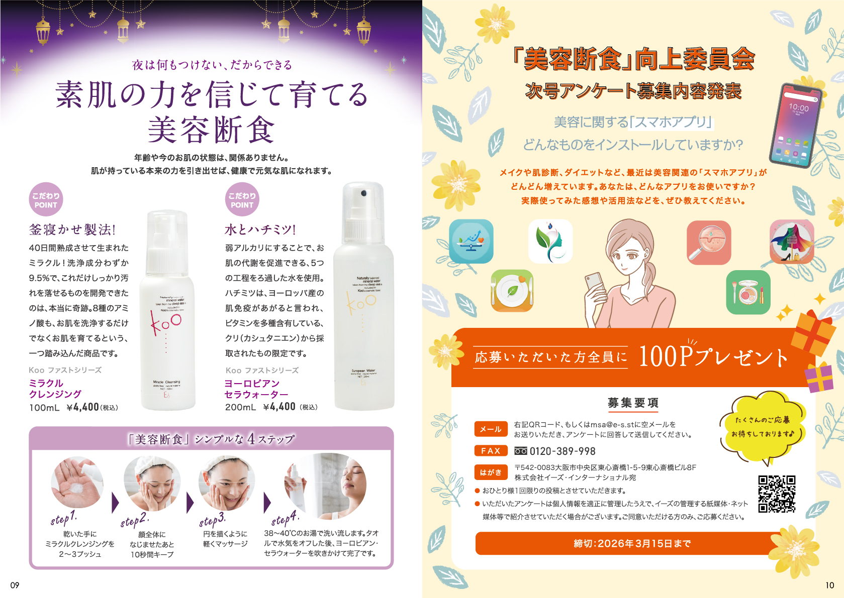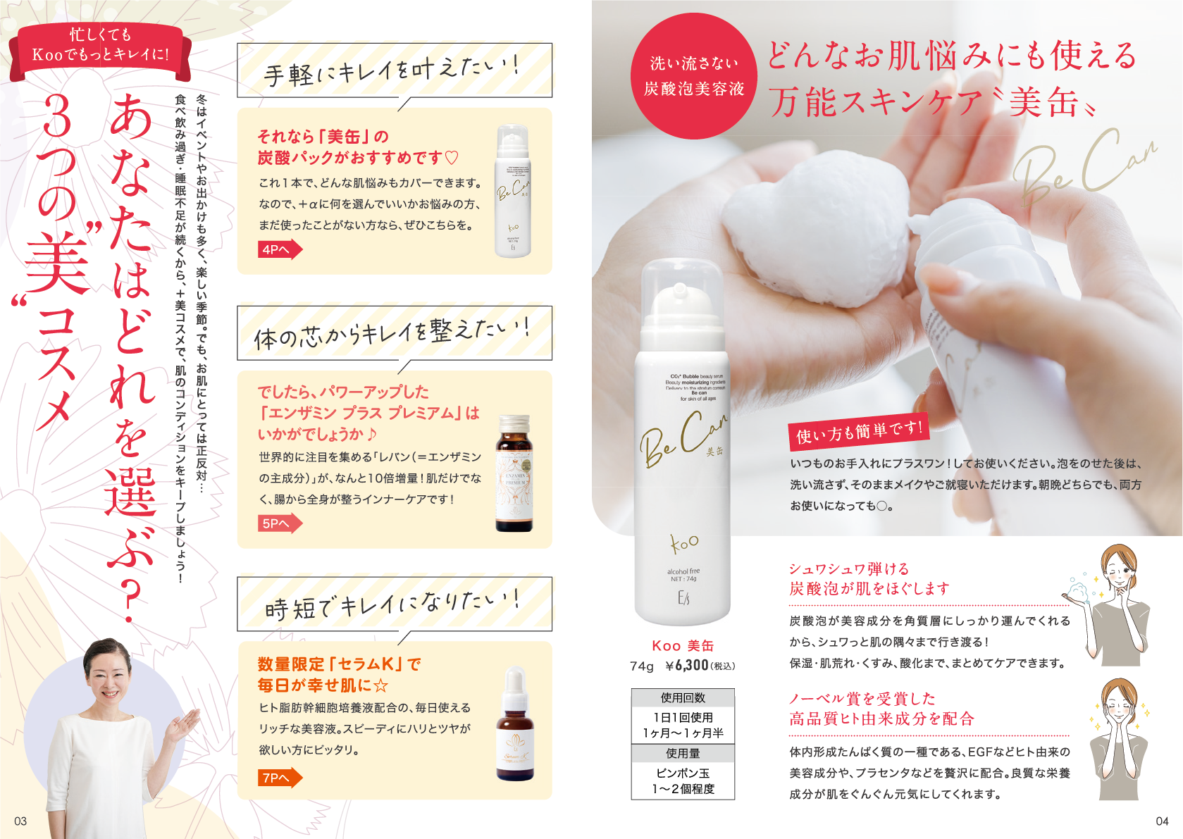 春夏秋冬で発行しているミラクル新聞。 新商品やキャンペーンのお知らせはもちろん、 Kooアイテムご使用の『お客様の声』も詰まった1冊となっております。